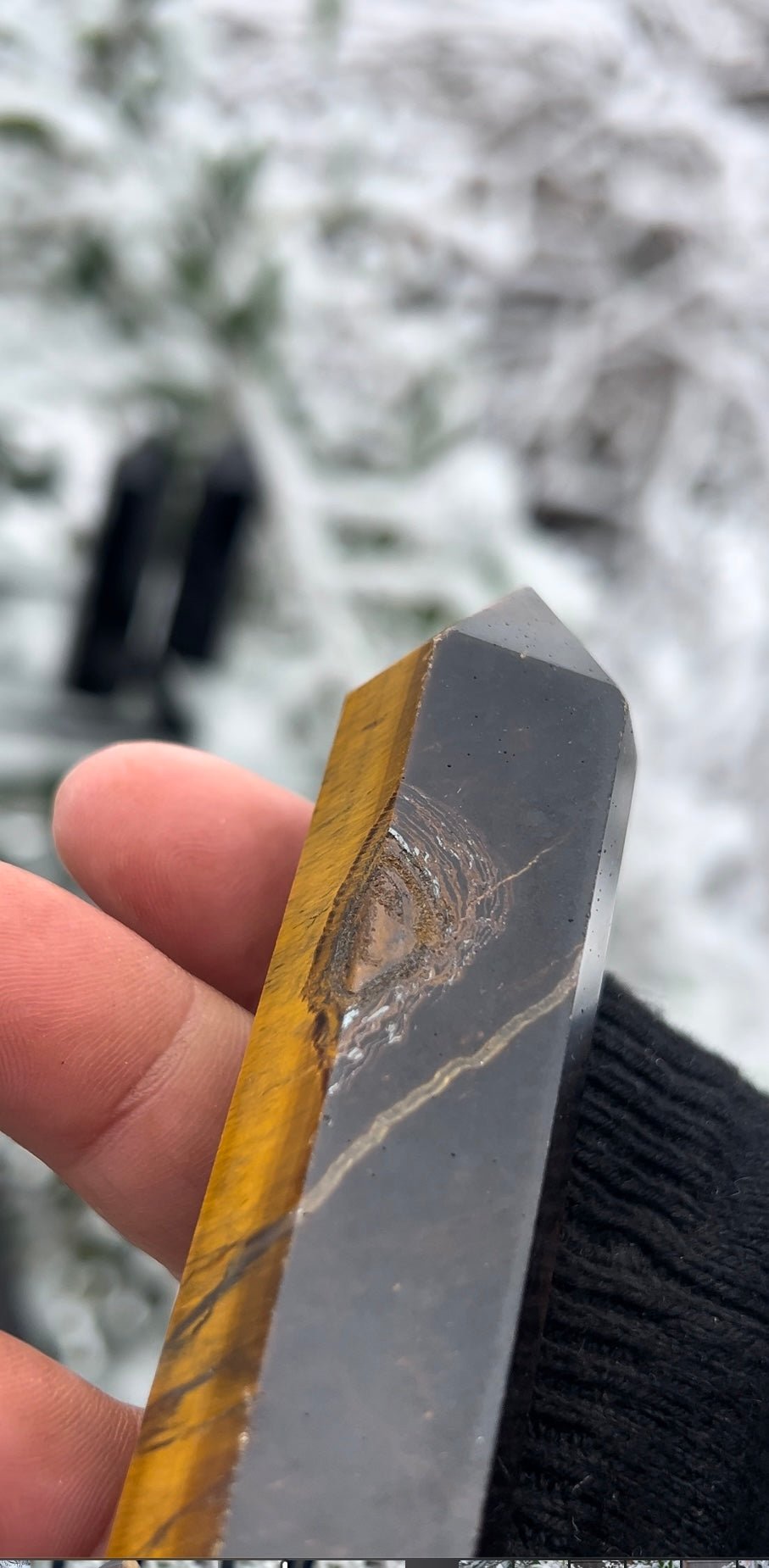This Tiger’s Eye Tower is a striking crystal with radiant golden and brown bands that shimmer beautifully as light dances across its surface. Its sleek, polished design and pointed shape make it both a visually captivating piece and a powerful energetic tool. Tiger’s eye is revered for its grounding and protective energy, and this tower is perfect for enhancing focus, courage, and self-confidence. It is an excellent addition to any crystal collection for personal empowerment, abundance, and emotional stability.